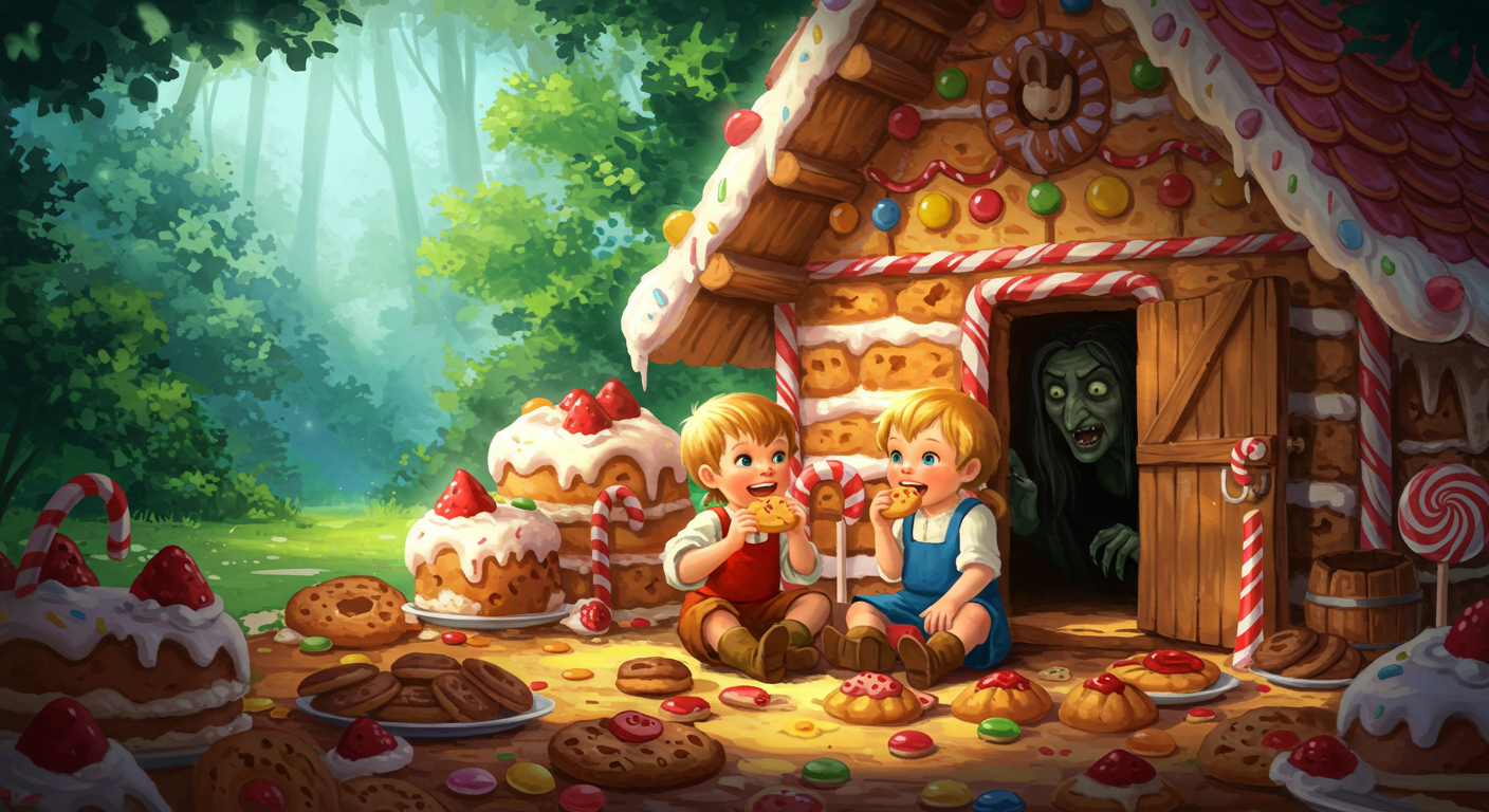 가난한 나무꾼과 그의 아내(계모), 그리고 두 남매 헨젤과 그레텔이 살고 있었습니다. 극심한 기근으로 먹을 것이 떨어지자, 계모는 아이들을 숲에 버리자고 남편을 설득합니다.