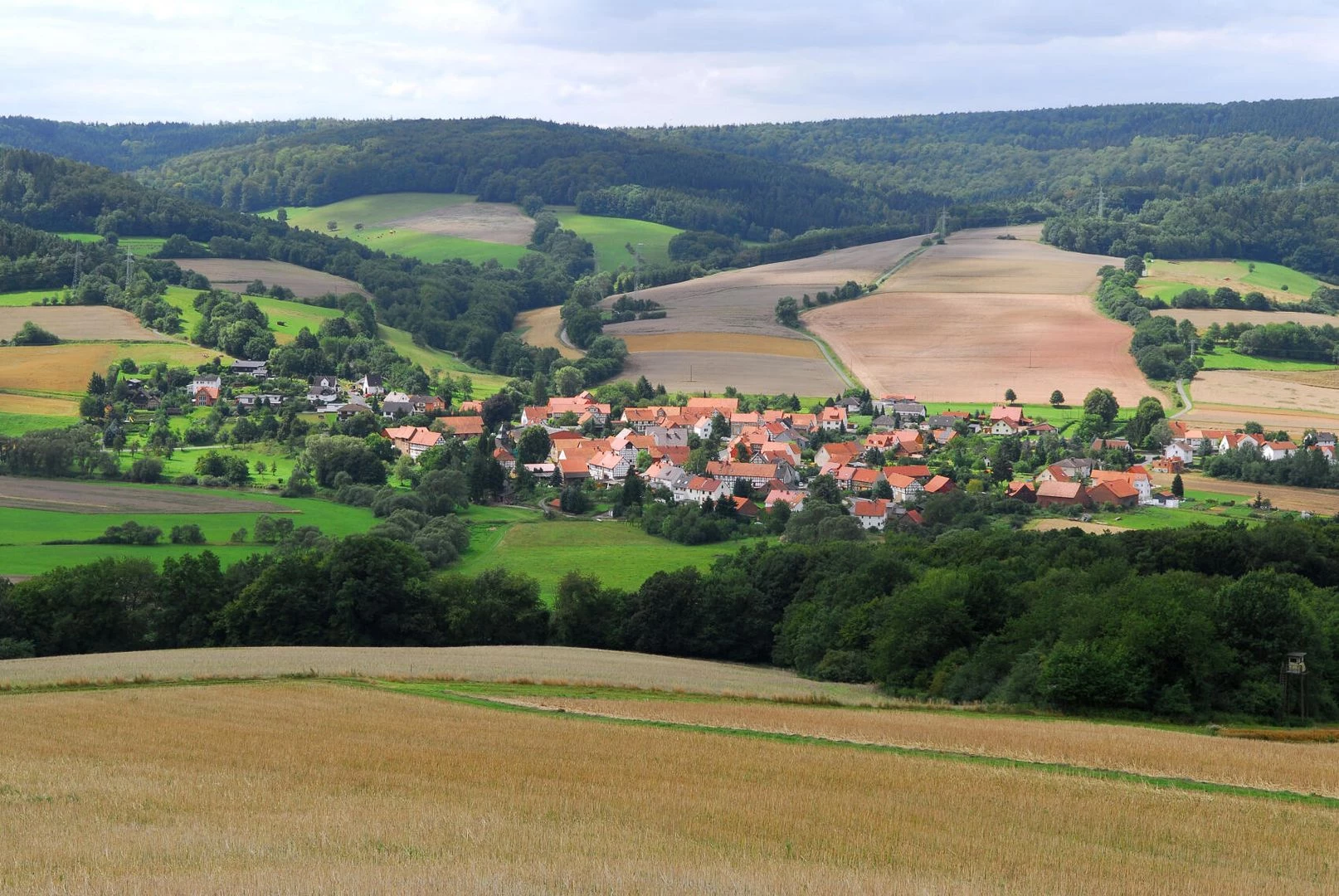 - 노출된 언덕의 너도밤나무 숲으로 둘러싸인 작은 마을