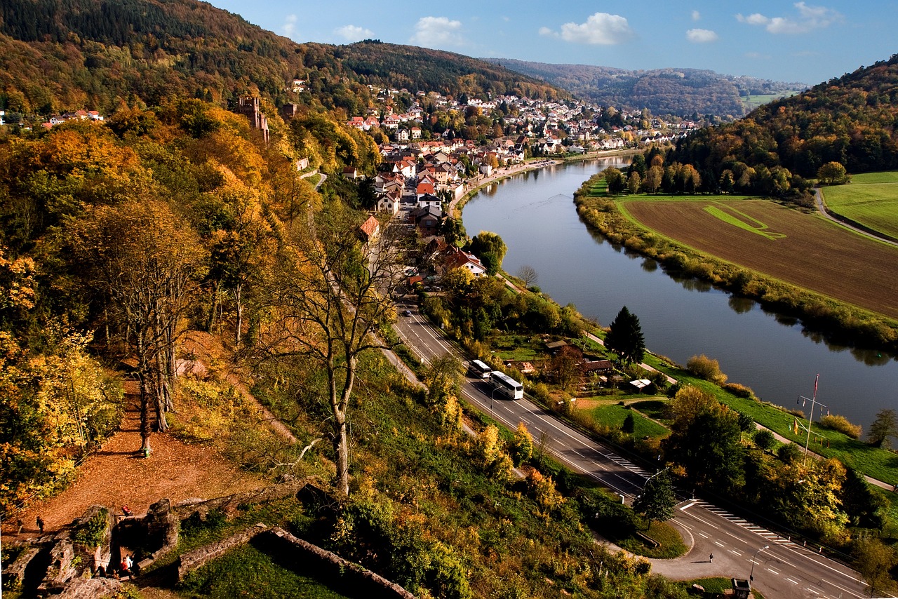 넥카슈타이나흐는 헤센 주의 가장 남쪽에 위치한 아름다운 마을로, 유럽 지오-자연공원 베르크슈트라세-오덴발트(Bergstraße-Odenwald)의 남쪽 관문입니다. 이 곳의 가장 눈에 띄는 특징은 넥카 강의 굽이를 따라 화환처럼 둘러싸고 있는 네 개의 중세 성입니다. 독일에서 유일무이한 이 '4성 앙상블'과 역사적인 구시가지, 그리고 5km에 달하는 차량 통행이 금지된 강변 산책로는 이 마을에 독특한 매력을 부여합니다. 🌄
