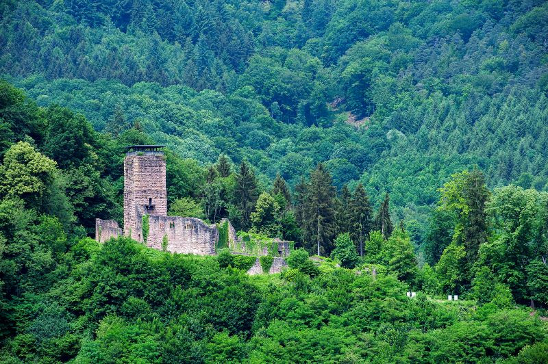 8m x 8m의 상당한 면적을 가진 거대한 요새 위에는 22m 높이에 덮개가 있는 관측 데크가 있습니다. 이곳에서 넥카 계곡, 넥카슈타이나흐, 그리고 맞은편의 딜스베르크 성의 멋진 전망을 감상할 수 있습니다.