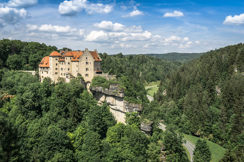 바이로이트에서 불과 30km 떨어진 프랑켄 스위스(Franconian Switzerland)의 심장부, 아혼탈(Ahorntal) 계곡 위 깎아지른 절벽 위에 서 있는 라벤슈타인 성(Burg Rabenstein)은 800년이 넘는 세월을 품고 있는 살아있는 역사의 현장입니다. 이 성은 단순한 관광지를 넘어 현재도 호텔과 이벤트 장소로 활용되며, 중세의 낭만과 현대의 편안함이 완벽하게 조화를 이룬 특별한 공간으로 재탄생했습니다.