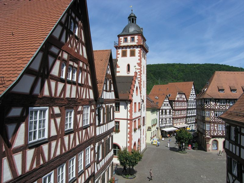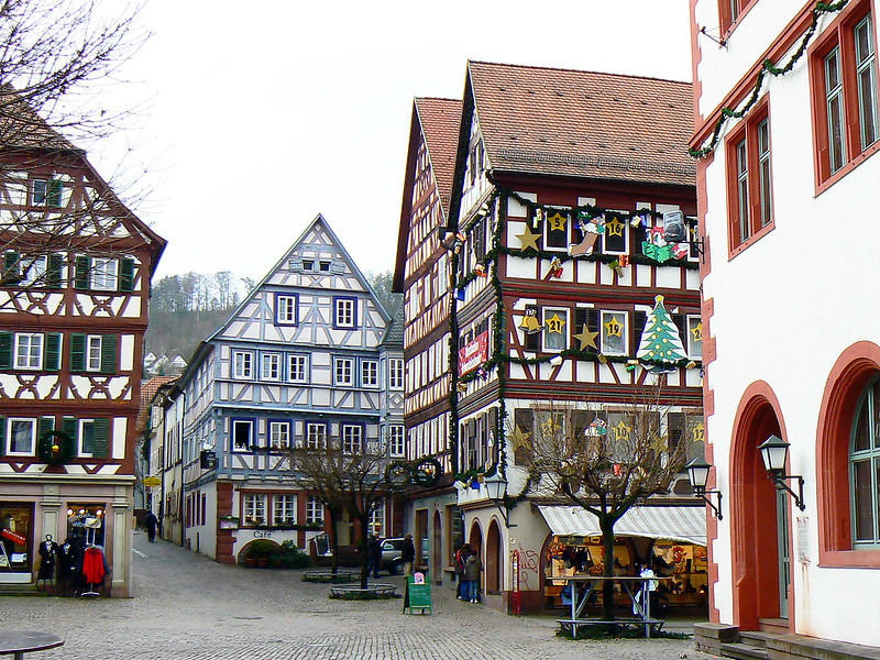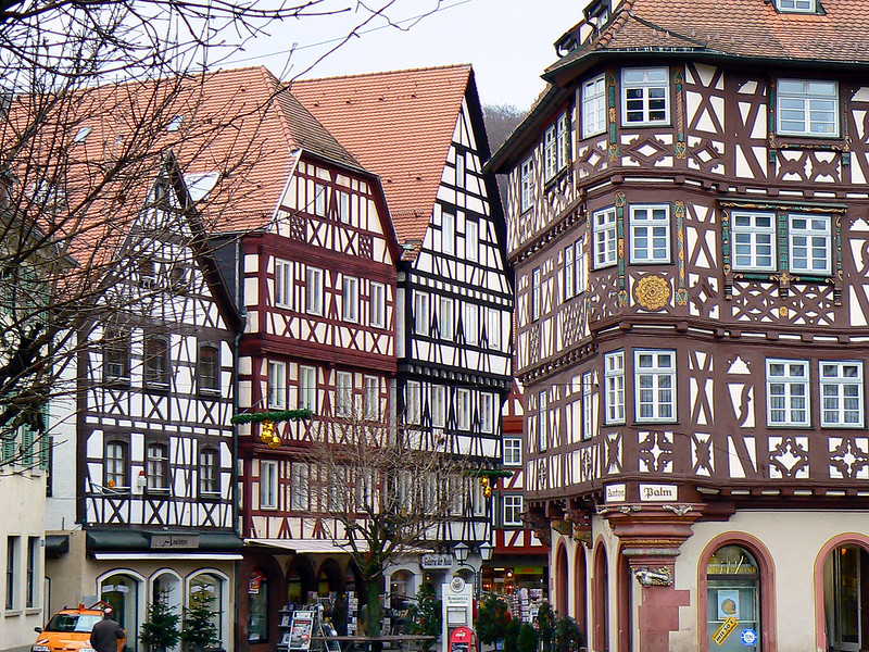 모스바흐의 구시가지는 독일에서도 손꼽히는 잘 보존된 중세 목조가옥 거리를 자랑합니다. 메인 스트리트를 따라 늘어선 뾰족하고 넓은 박공지붕의 목조가옥들, 회색, 검정색, 빨간색 톤의 수백 년 된 목조 건축물들이 만들어내는 풍경은 정말 압도적입니다. 🏠🏠