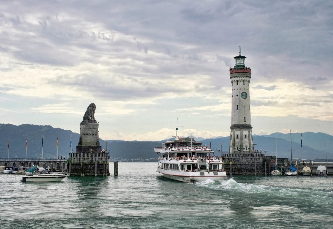 보덴제 호수는 독일, 오스트리아, 스위스 세 나라의 국경이 맞닿아 있는 중앙유럽의 세 번째로 큰 호수로, 린다우는 이 호수의 독일 측 동쪽 끝에 위치해 있습니다. 맑은 날에는 호수 너머로 알프스 산맥의 웅장한 모습을 감상할 수 있어, 도시의 경관을 더욱 특별하게 만들어줍니다.