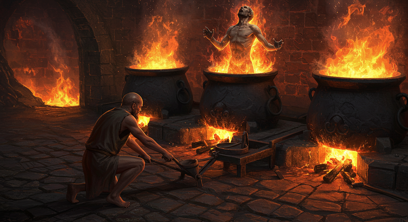 - 악마의 명령: "불이 약해지면 죄인들이 춥다고 난리야! 더 세게 때워라! 크크크."