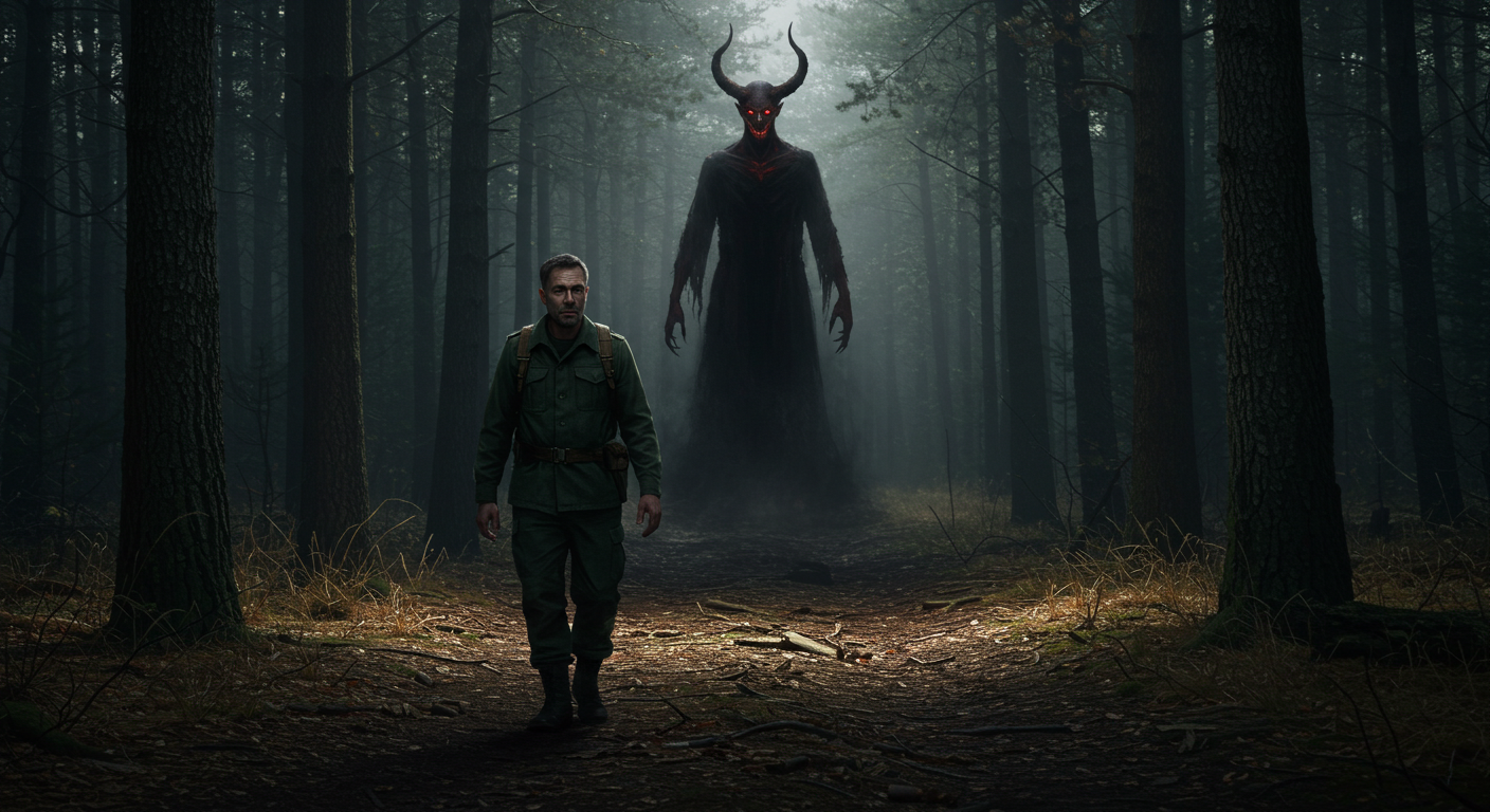 검은 망토를 두른 기괴한 남자가 나무 뒤에서 나타났다. 뿔이 삐죽 솟은 머리, 번뜩이는 붉은 눈, 그리고 유황 냄새가 진동하는 몸...