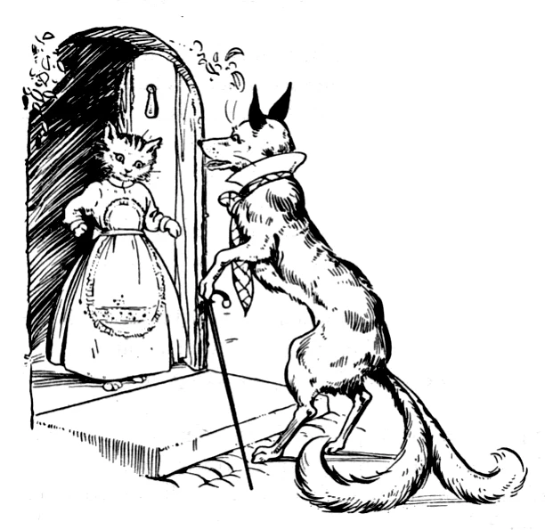 "여우 부인, 여기 계신가요?" 고양이가 물었어요.