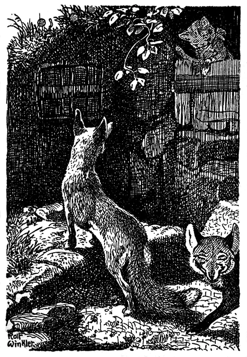 하지만 젊은 여우가 나타났을 때, 여우 부인이 야옹이에게 물었어요: "그분이 빨간 반바지를 입고 있니? 뾰족한 주둥이를 가지고 있니?"
